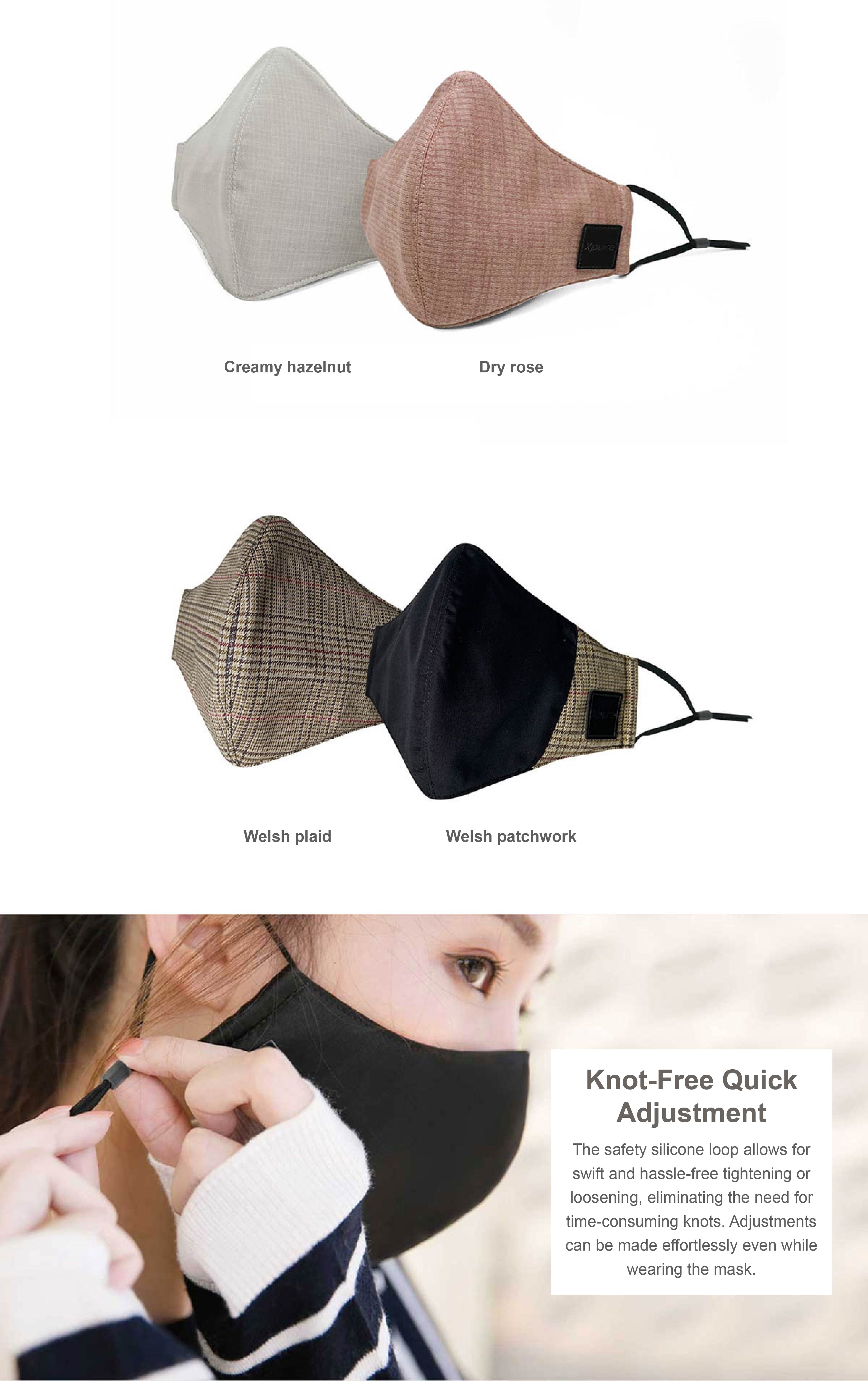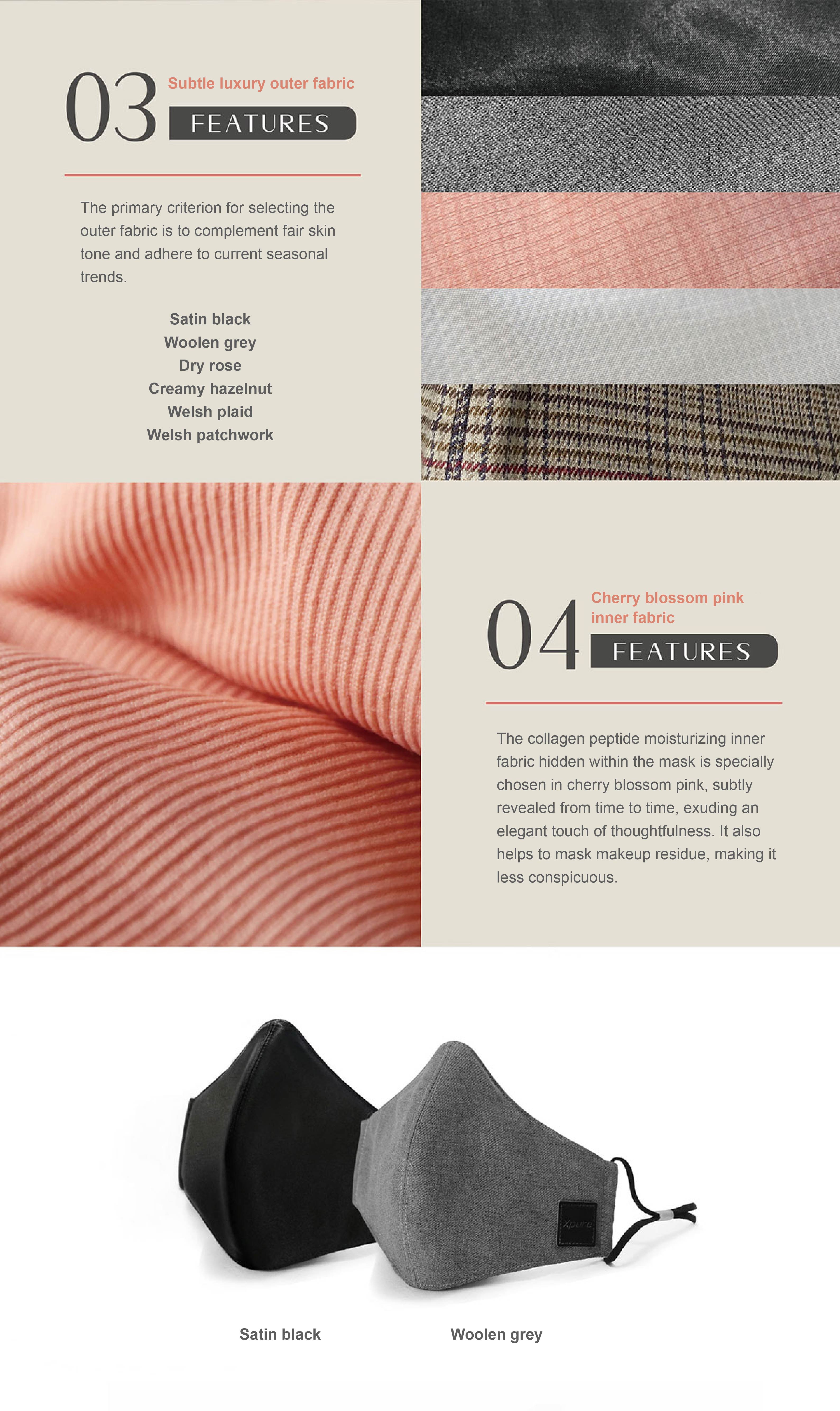 The surface fabric of Welsh tweed is made of 100% pure cotton plain woven breathable surface fabric. In addition to having an excellent touch, the breathing experience is also much improved. However, it should be noted that when drying the pure cotton material after cleaning, the surface needs to be straightened (just like washing a pure cotton shirt) so that the mask can remain flat after drying. Or you can use an iron to iron at low temperature (recommended below 100 degrees C) to quickly restore the surface to a smooth surface.