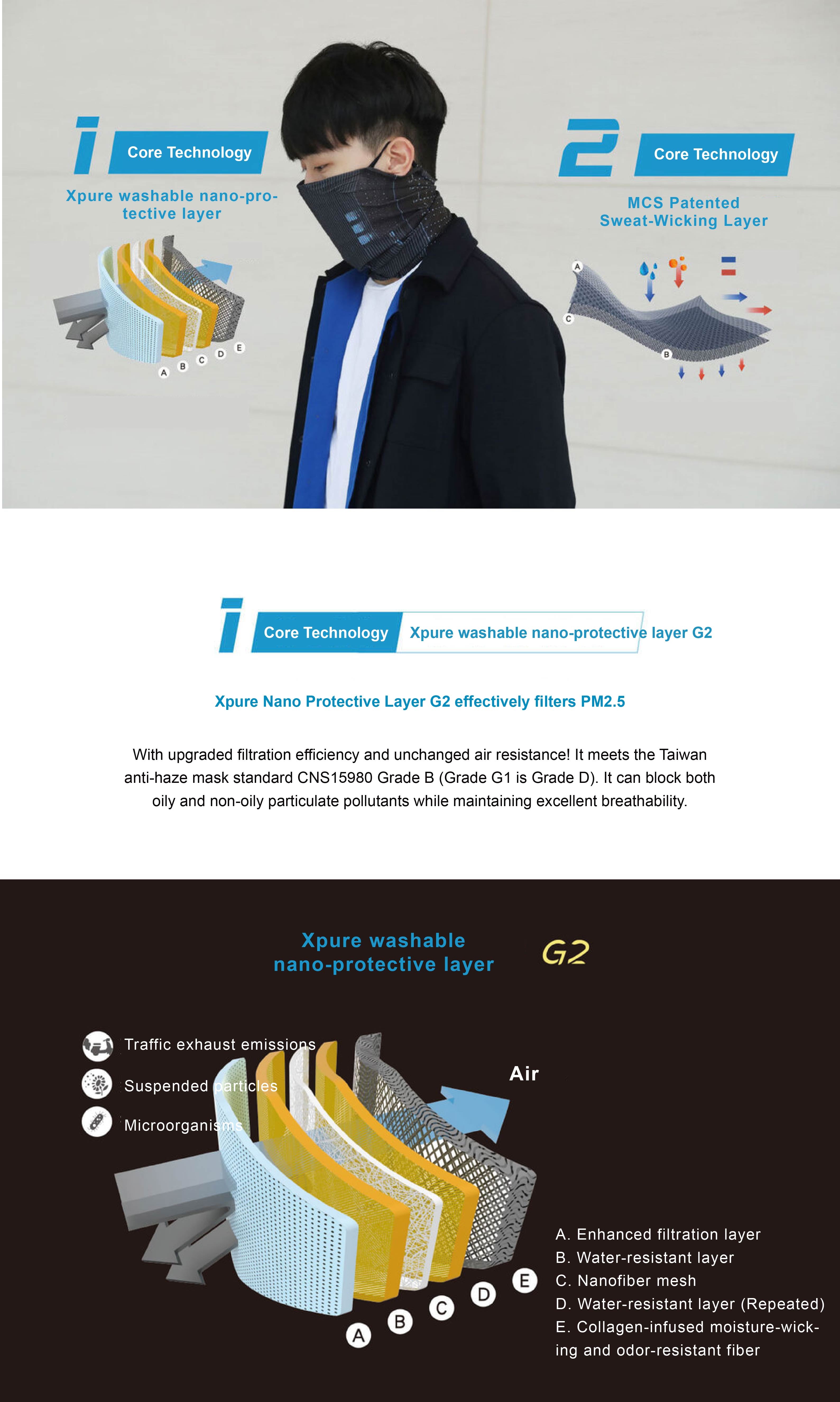 - Xpure nano protective layer is the second generation and can pass CNS15980 level B (G1 is level D).