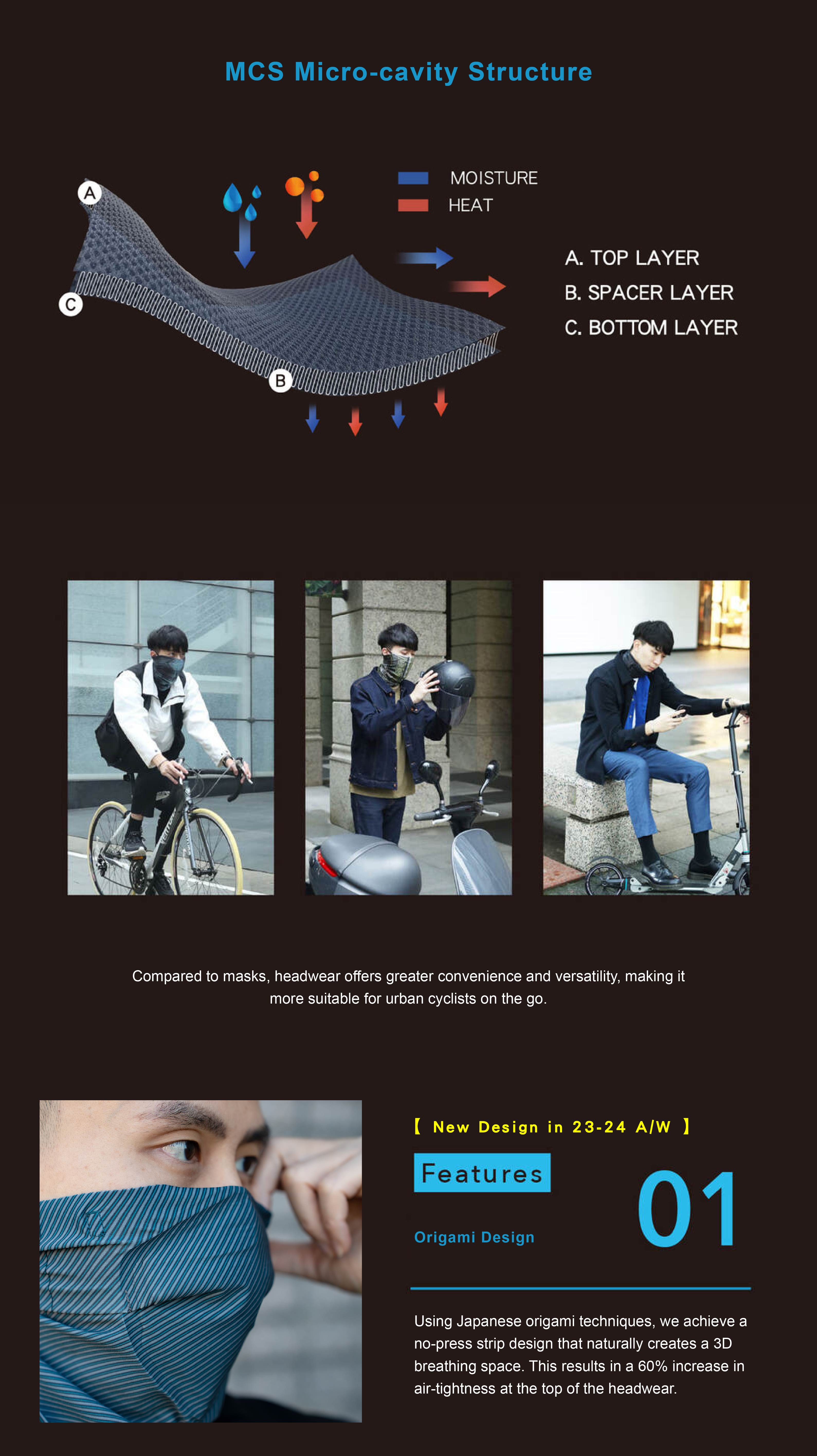 There is also a triathlon rider in our team (high five~), and his answer is: "This product is only suitable for use in the aerobic zone. When attacking uphill or racing for seconds, oxygen intake is everything! Anyone who can Get out of here if you sacrifice your air intake! But when going downhill or on flat ground, especially in urban areas, industrial areas, or right behind a truck, please pull on your magic hood to protect your precious lungs.”