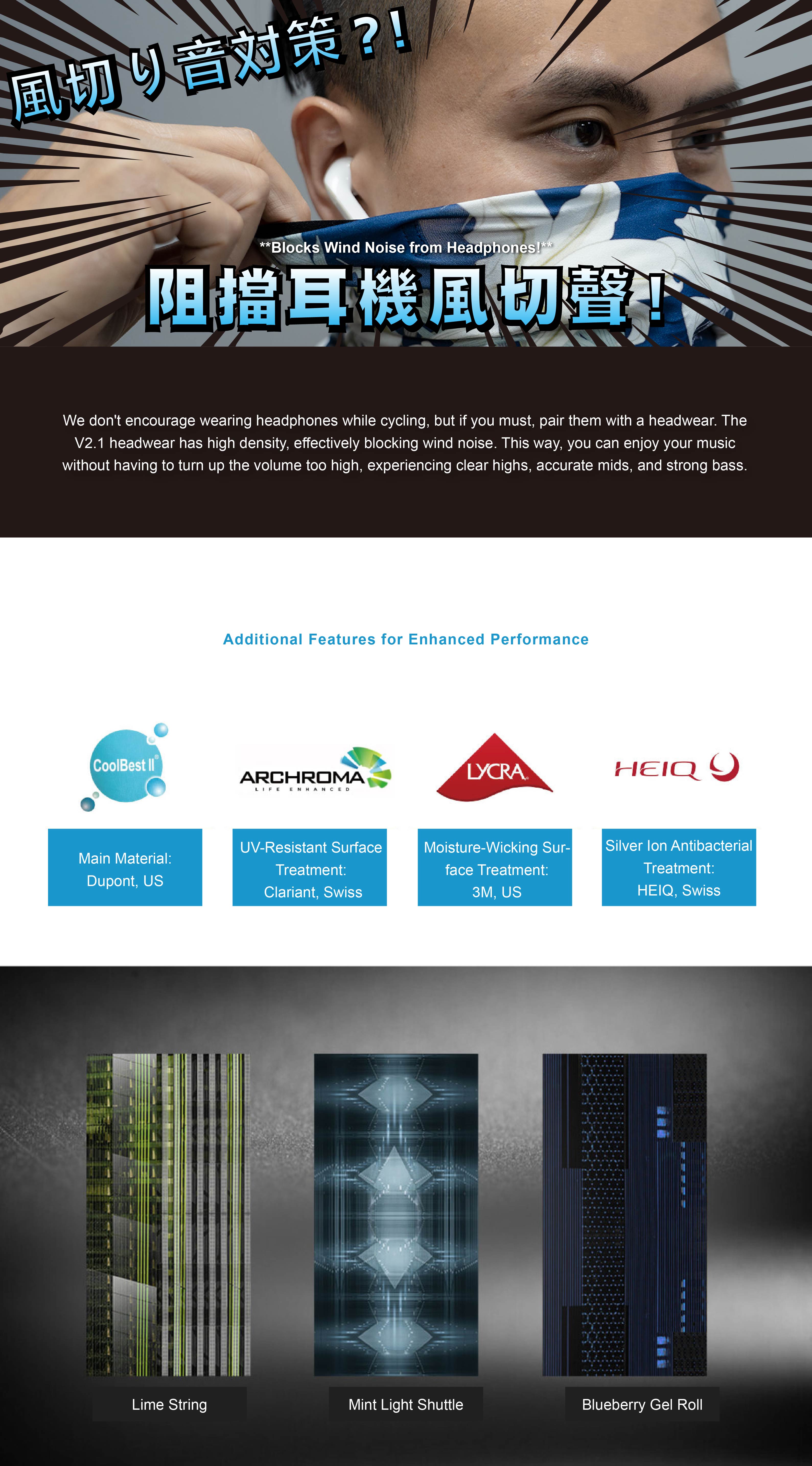 - The headscarf fabric is made of Coolbest II Lycra elastic fabric, which is cool, comfortable and full of color.