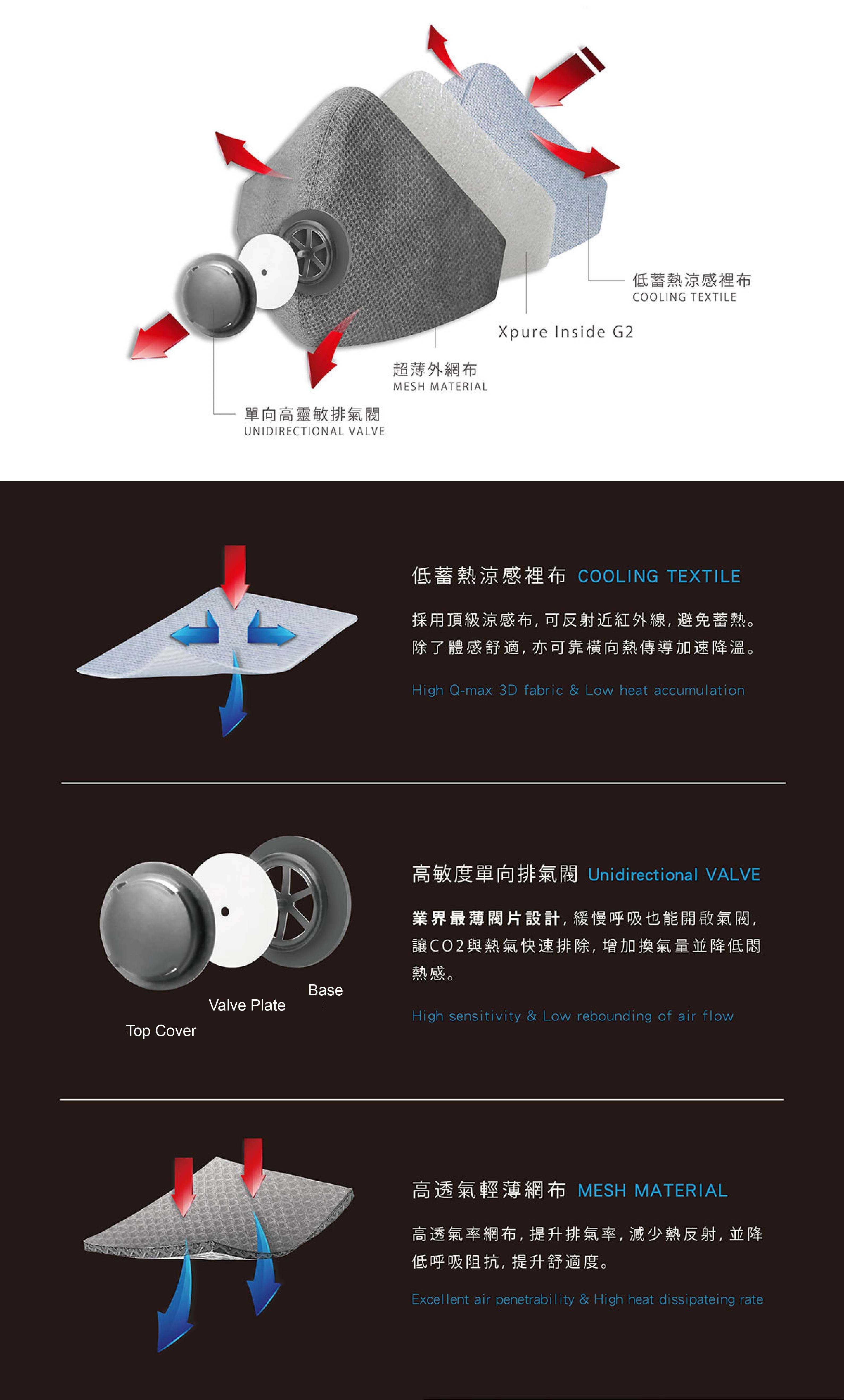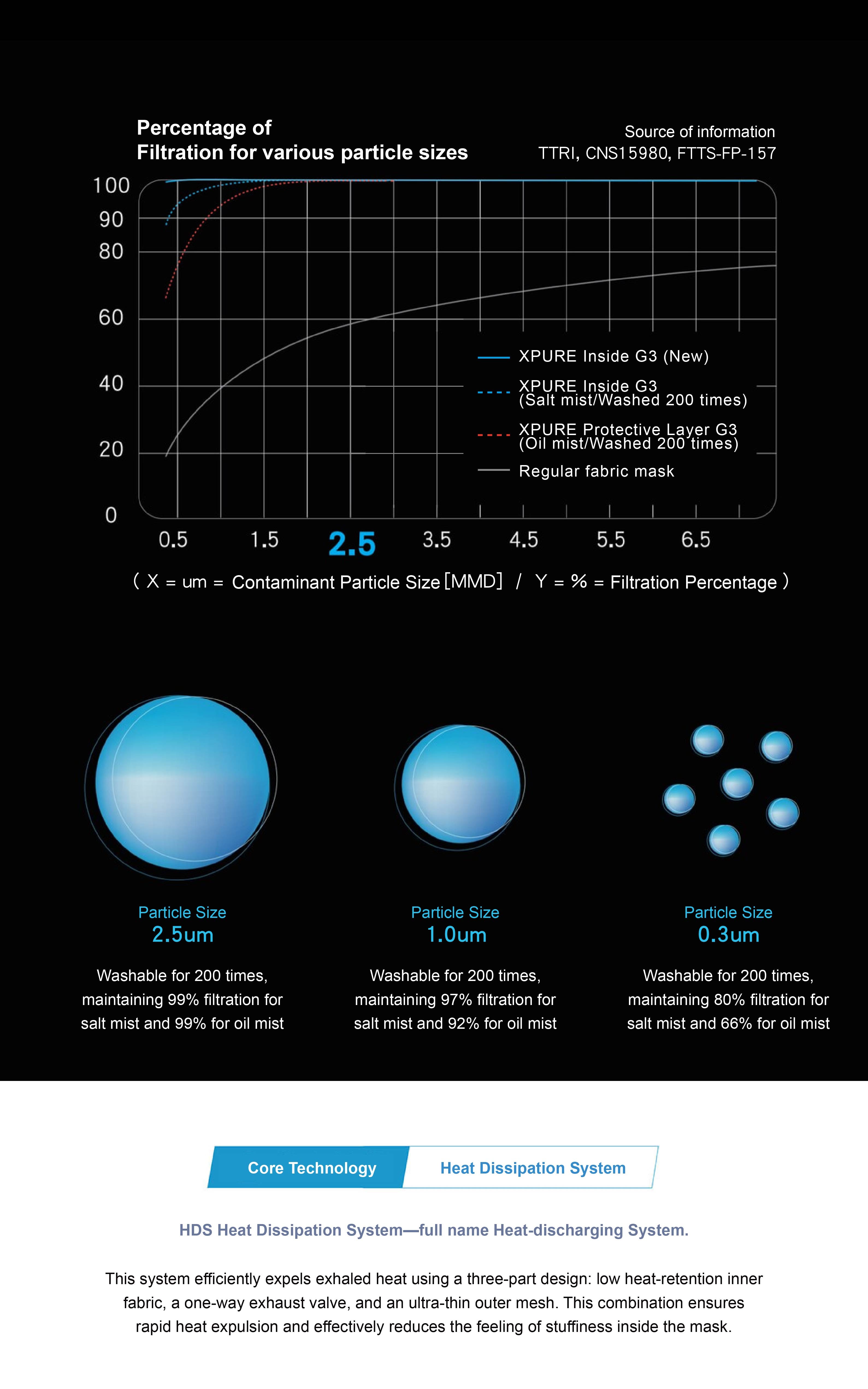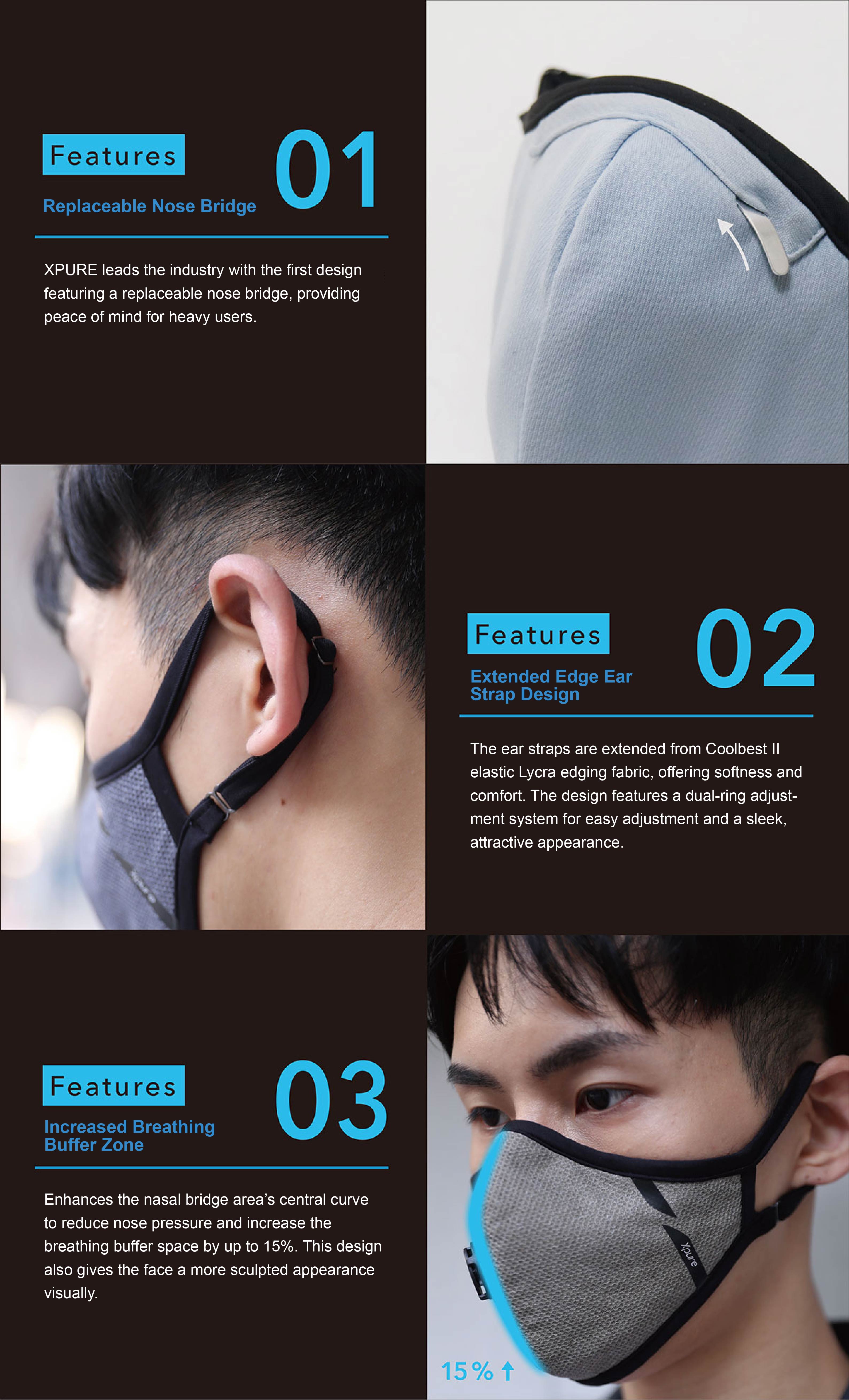 The Urban model, All-fit model and Beauty model use the same Xpue nano protective layer G2, which all pass CNS15980 B level, so the filtration effect is the same, and of course they can also withstand 200 times of water washing! The basic model uses G1 filter material, which passes CNS15980 D level. It has a slightly inferior protective effect, but it is sufficient for use in general environments.