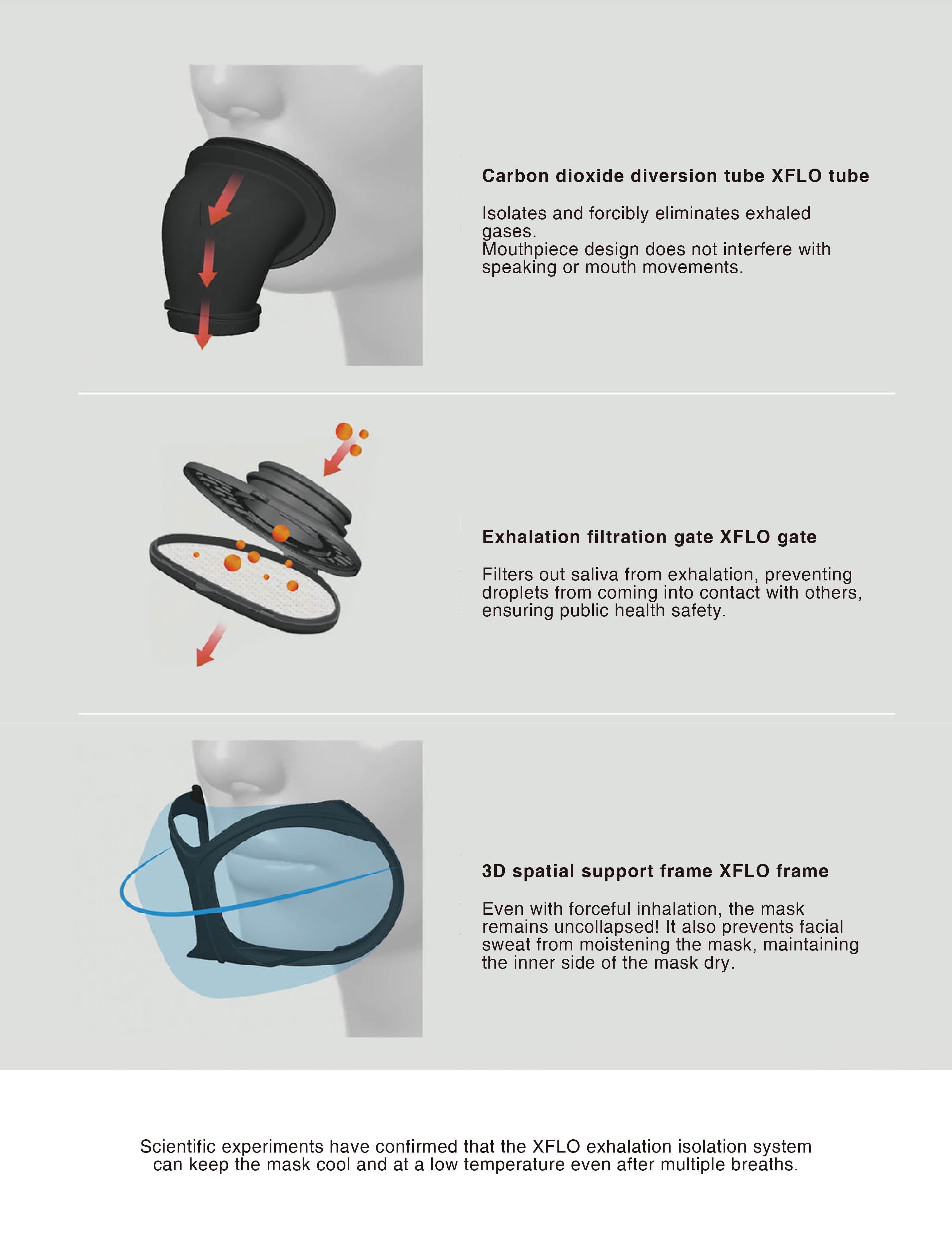 - The national patented XFLO system can completely block exhaled heat and carbon dioxide, achieving the world's only "zero stuffiness" effect!