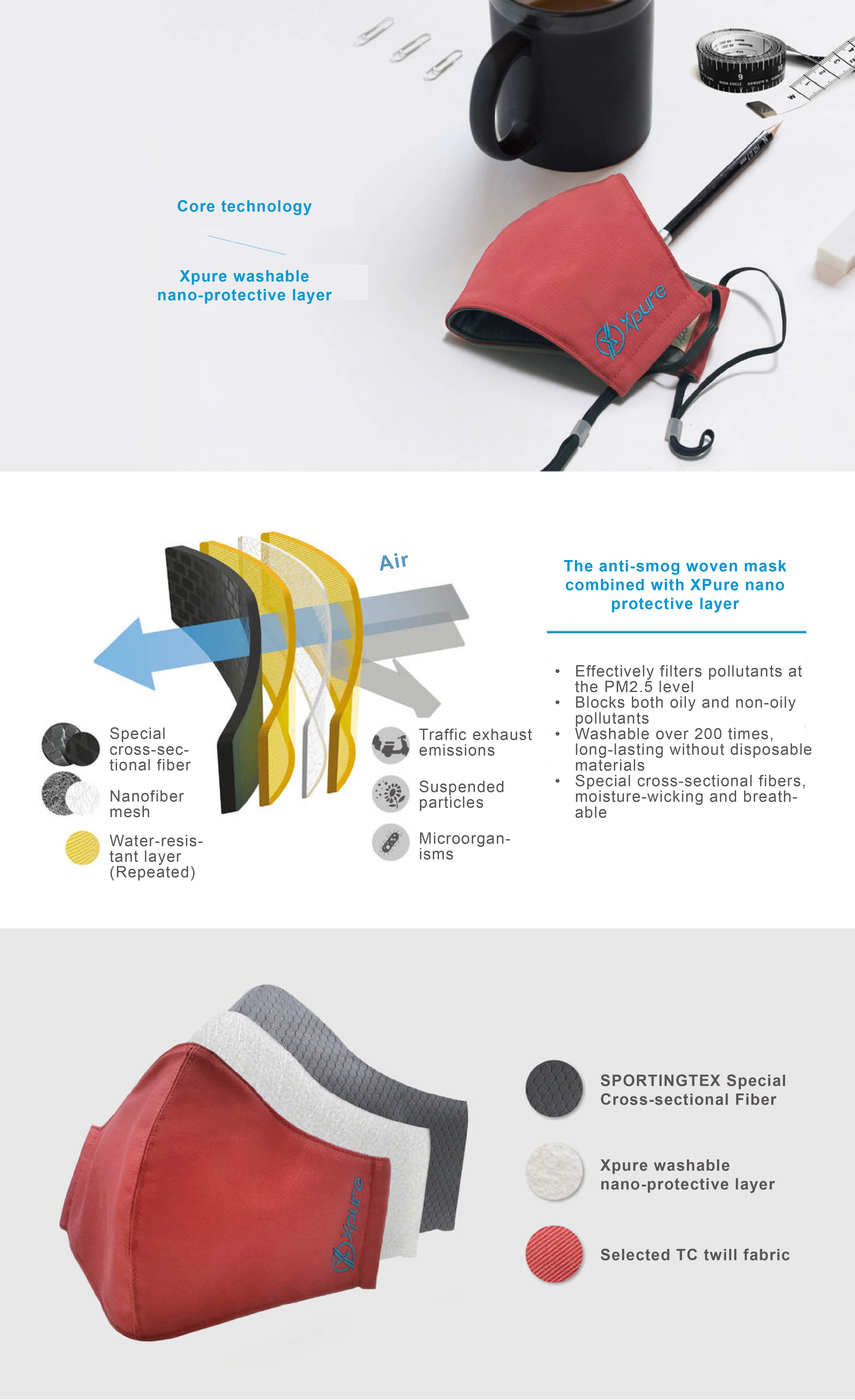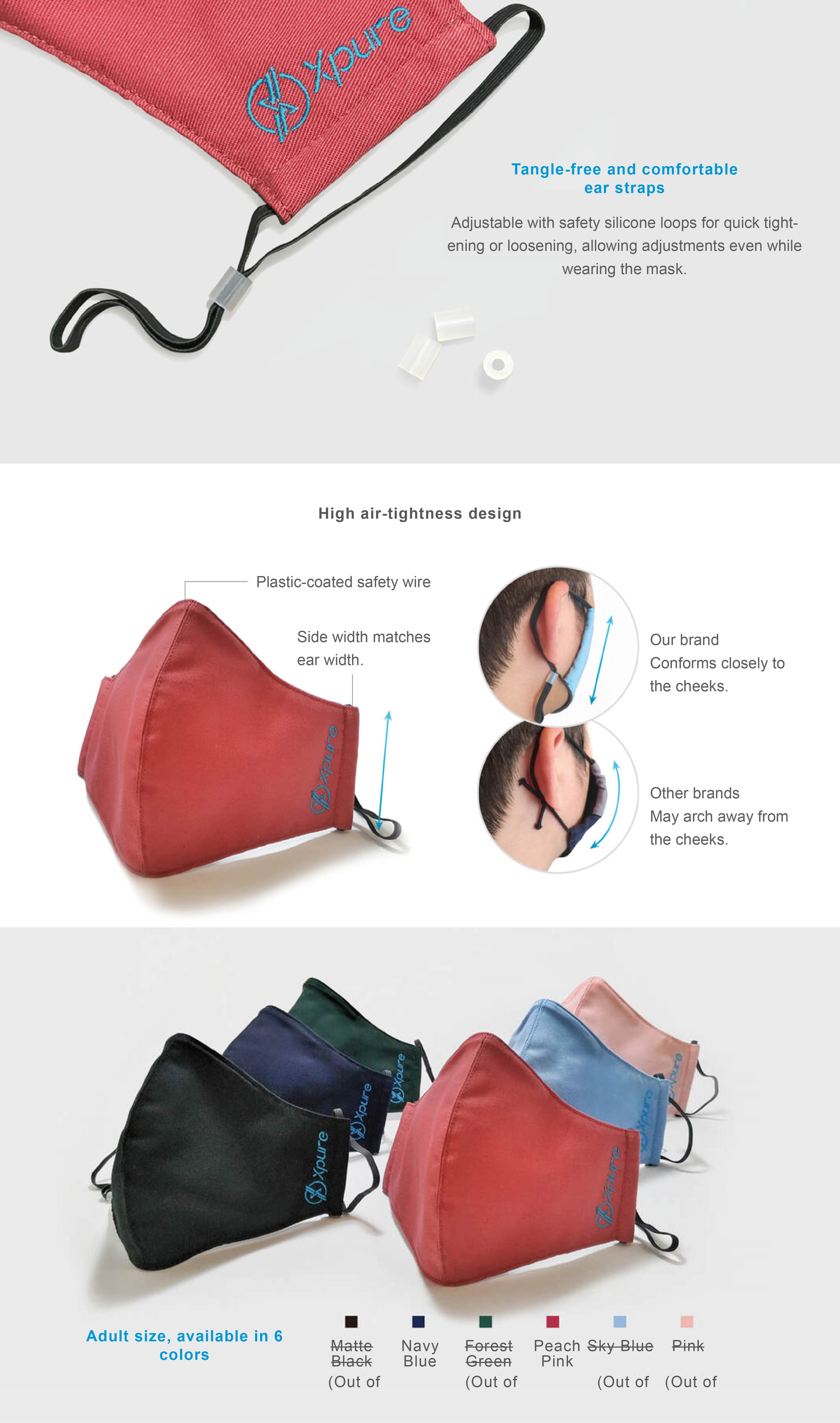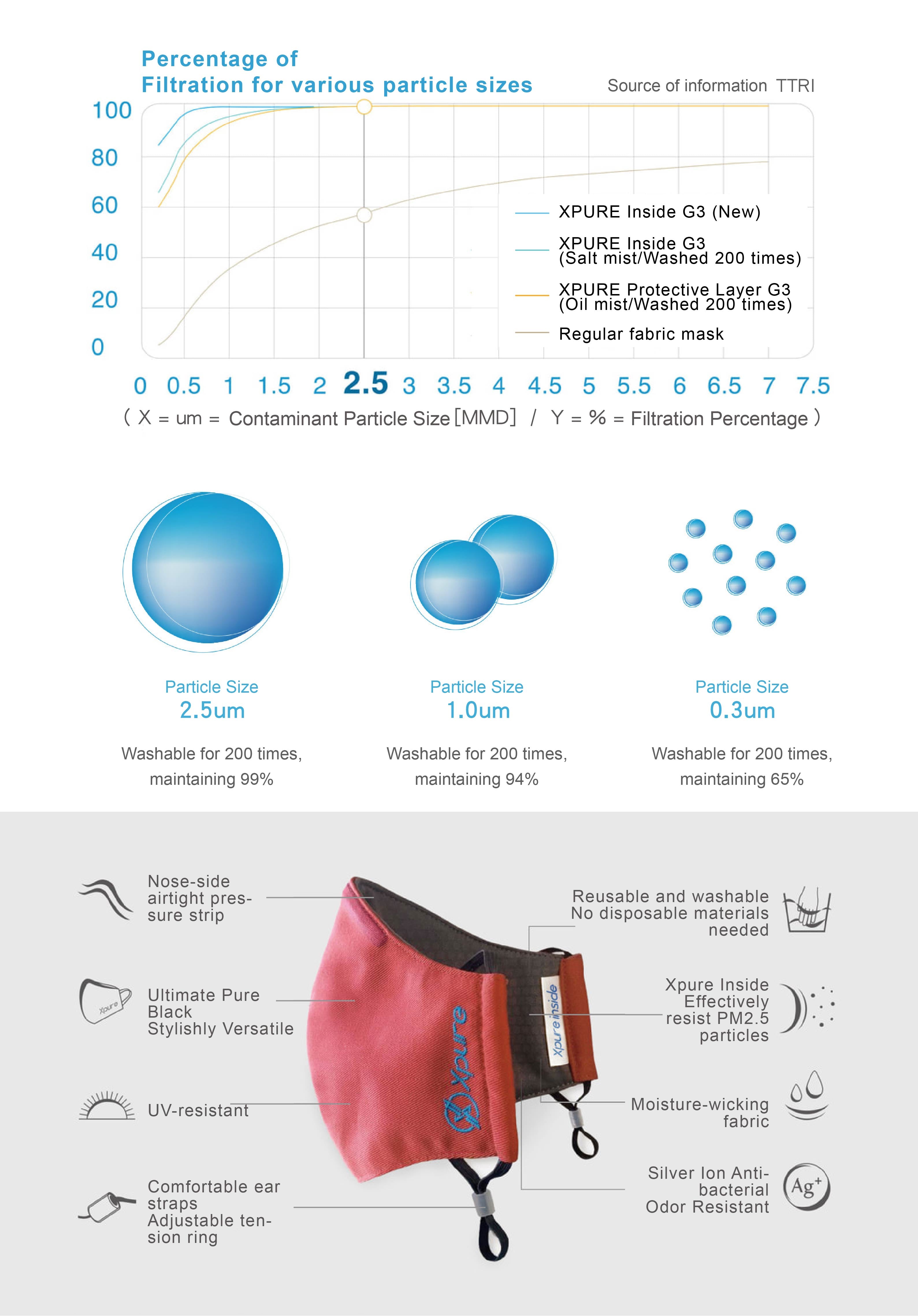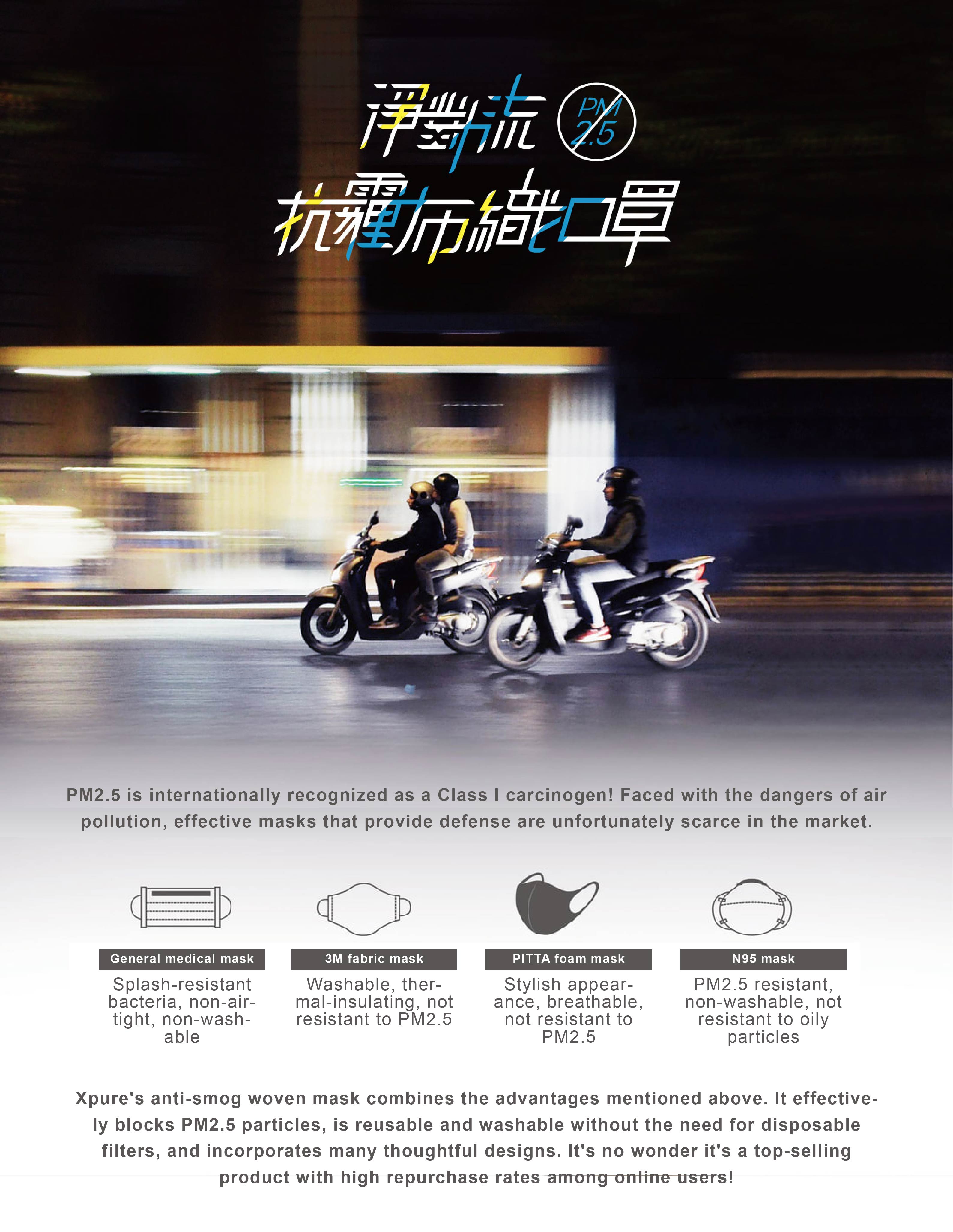 However, N95 masks generally use electrostatic filtration and can only be used for 6 to 8 hours. They cannot be washed and cannot resist oily pollutants (kitchen fume, automobile and motorcycle exhaust, etc.), which are the strengths of Xpure filtration technology. . Therefore, if we exclude high-risk industrial environments and just want to fight PM2.5 in daily life, our masks are not inferior to N95 in terms of overall protection efficiency. ( Related test report webpage )