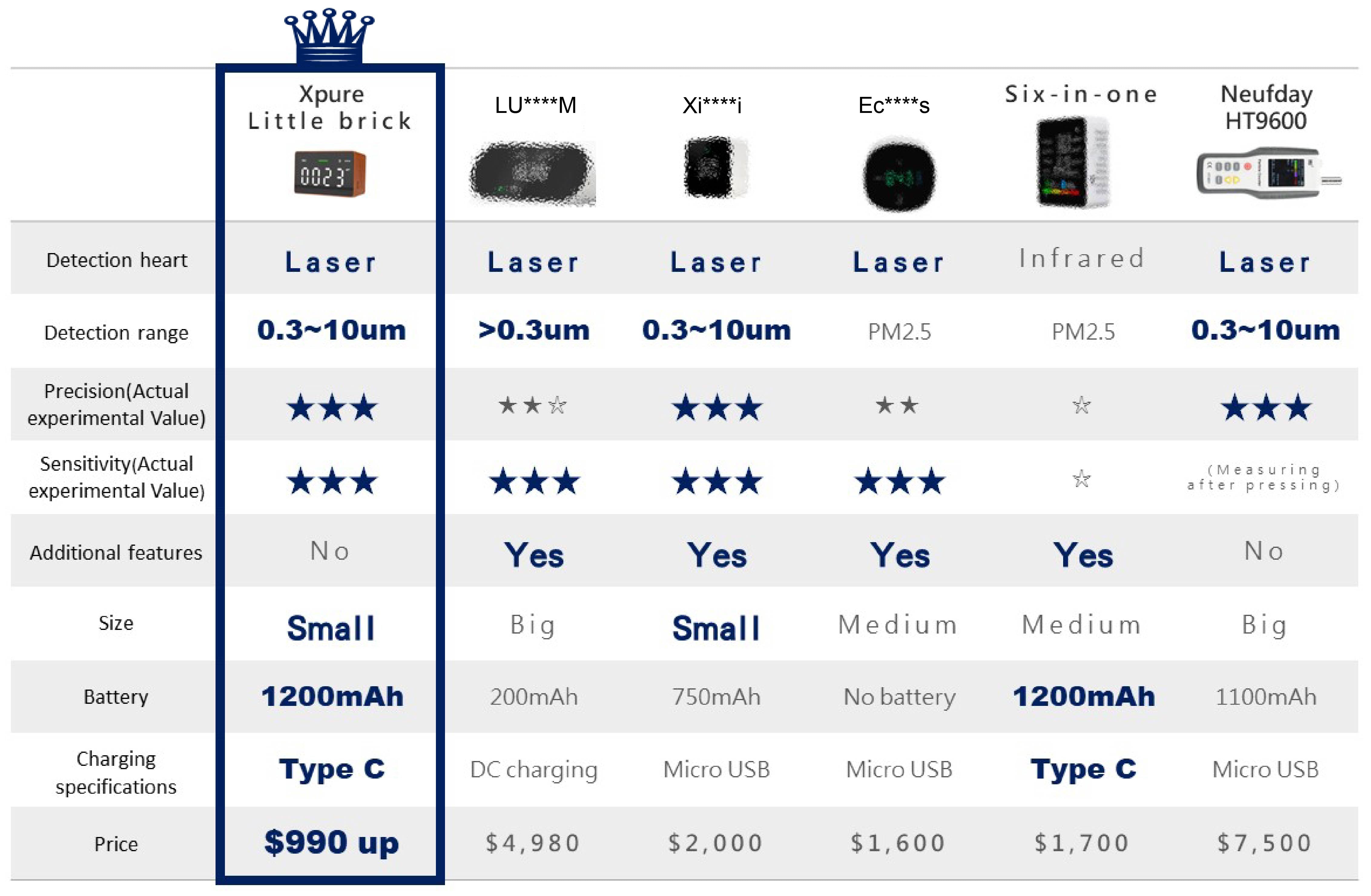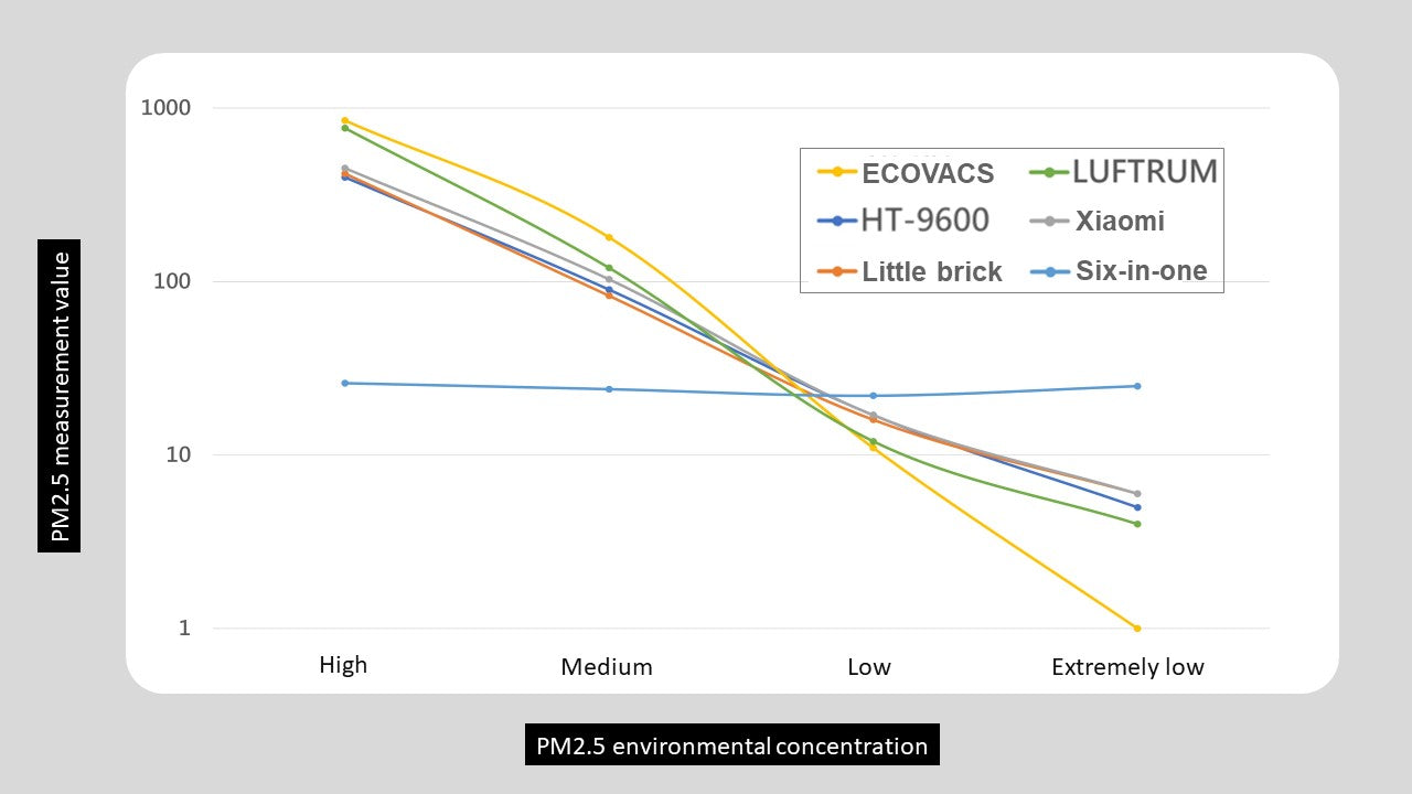 We bought several air detectors with higher volume on the Internet and used them with a relatively high-end particle counter (HT9600) to conduct particle detection experiments in a closed space . We measured PM2.5 from high concentrations to low concentrations. The following is a video of the experiment With comparison chart: