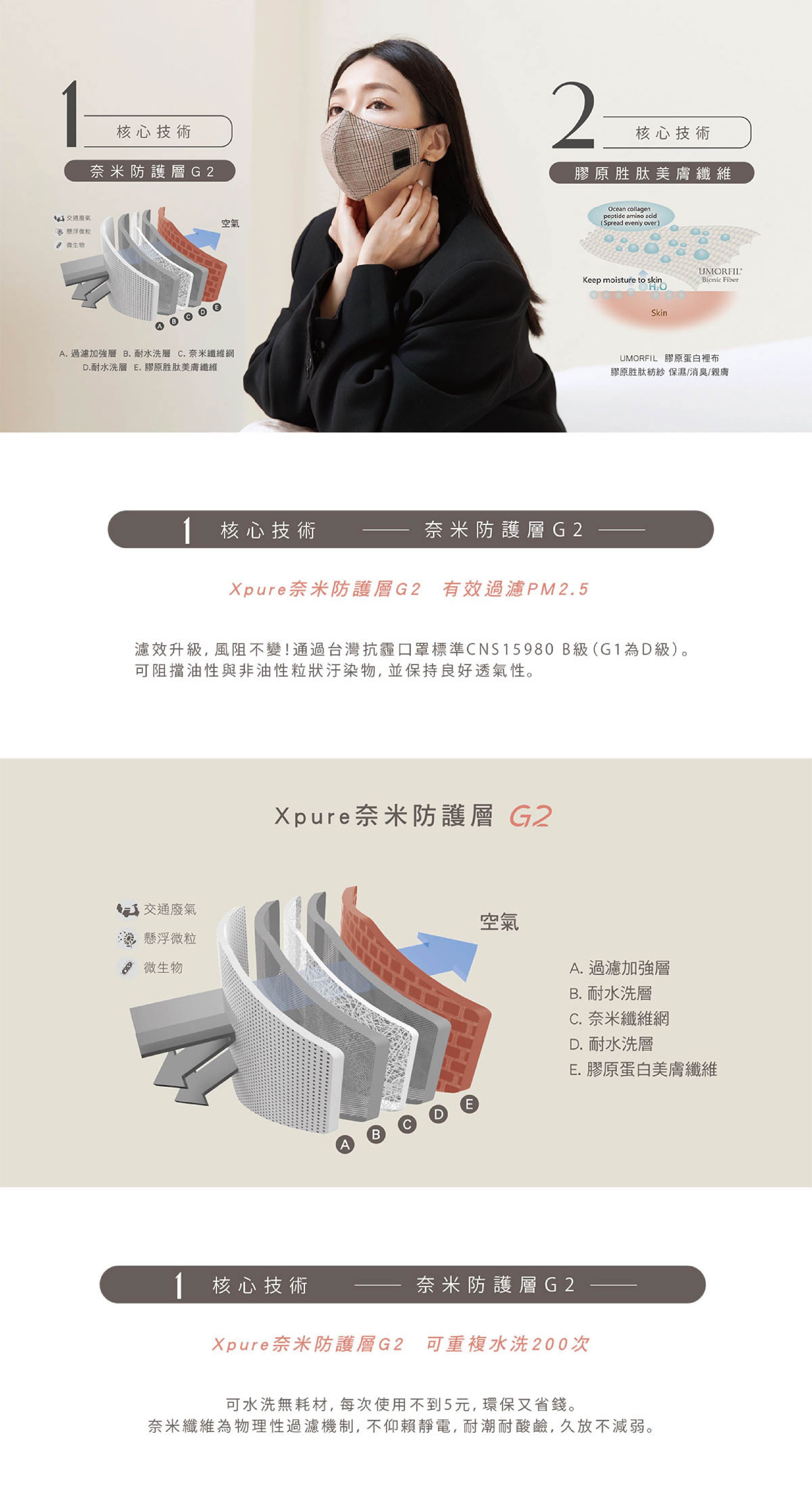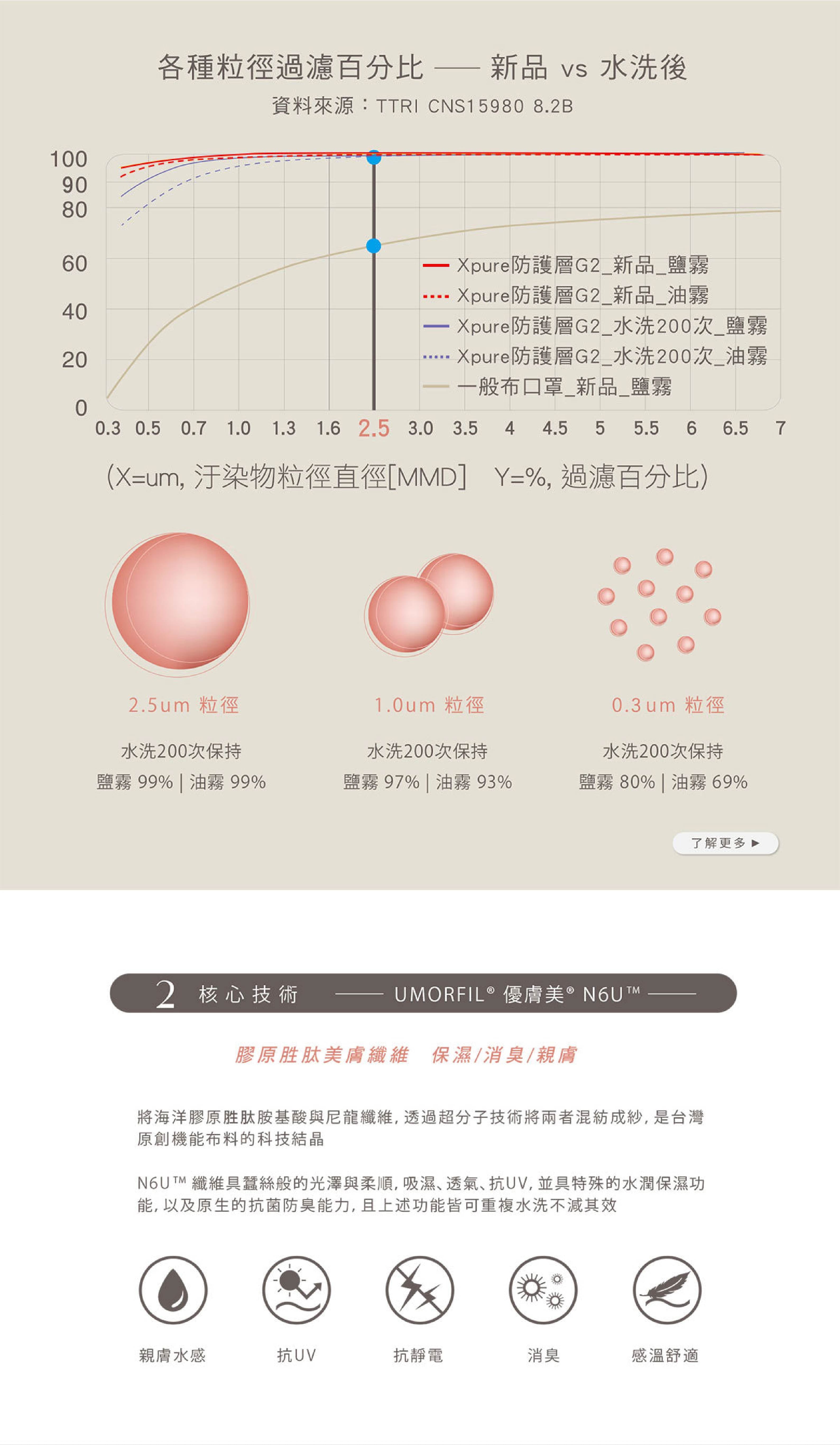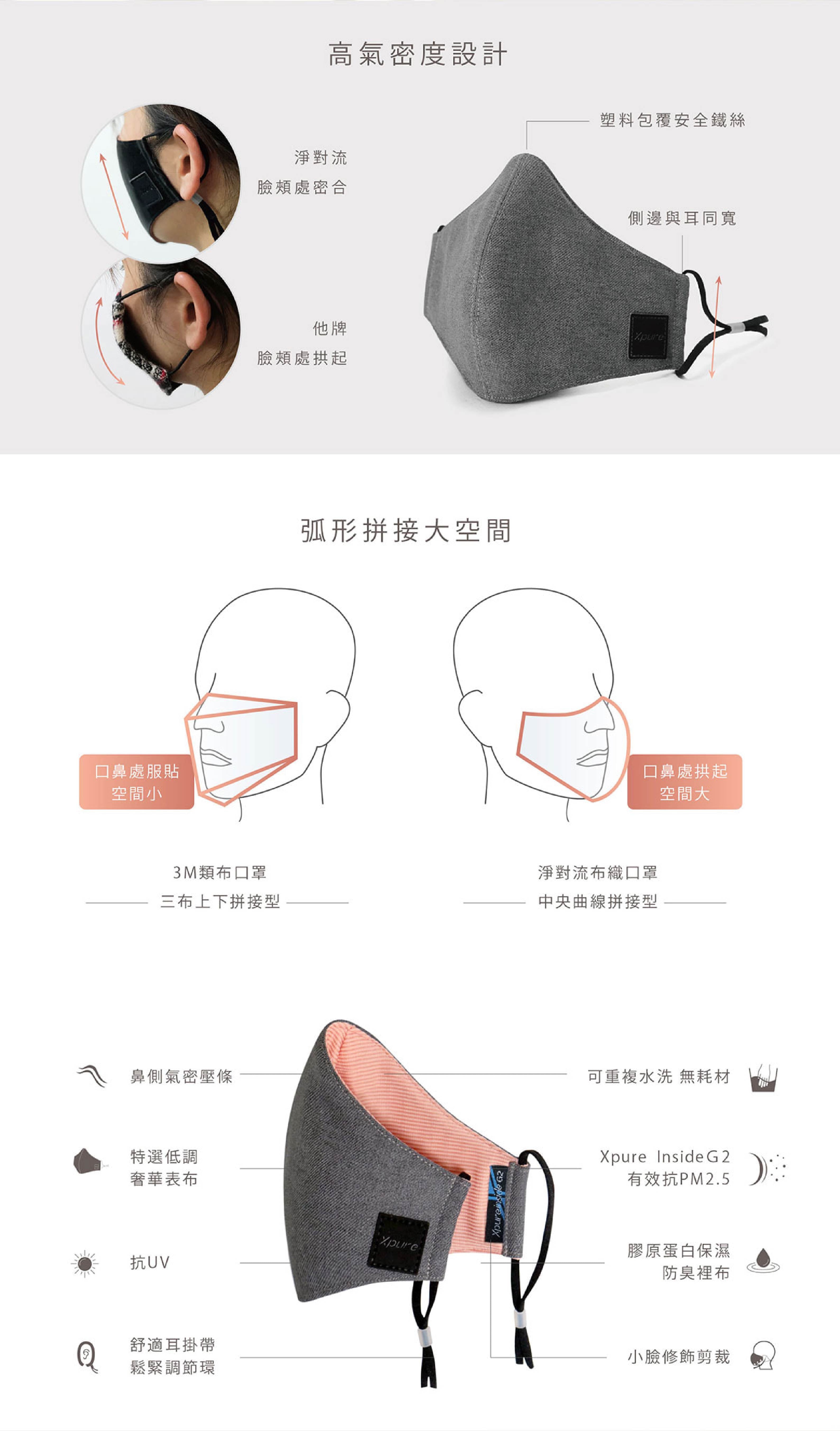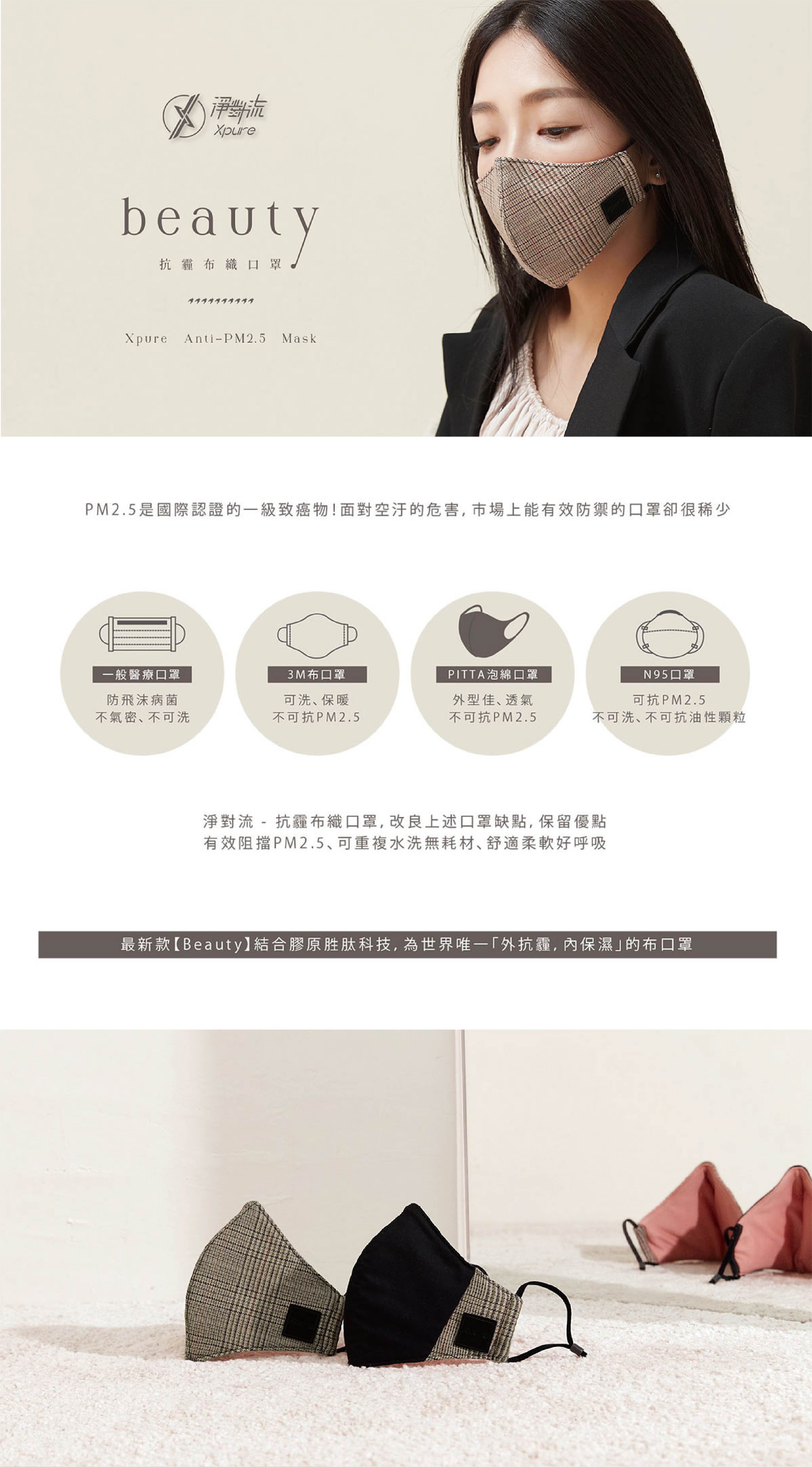 Beauty款使用Xpure inside G2濾材 (CNS15980 B級),基本款則使用Xpue inside G1濾材 (CNS15980 D級),因此在過濾效果上Beauty款是比基本款更好的唷!當然兩者同樣都能承受水洗200次。