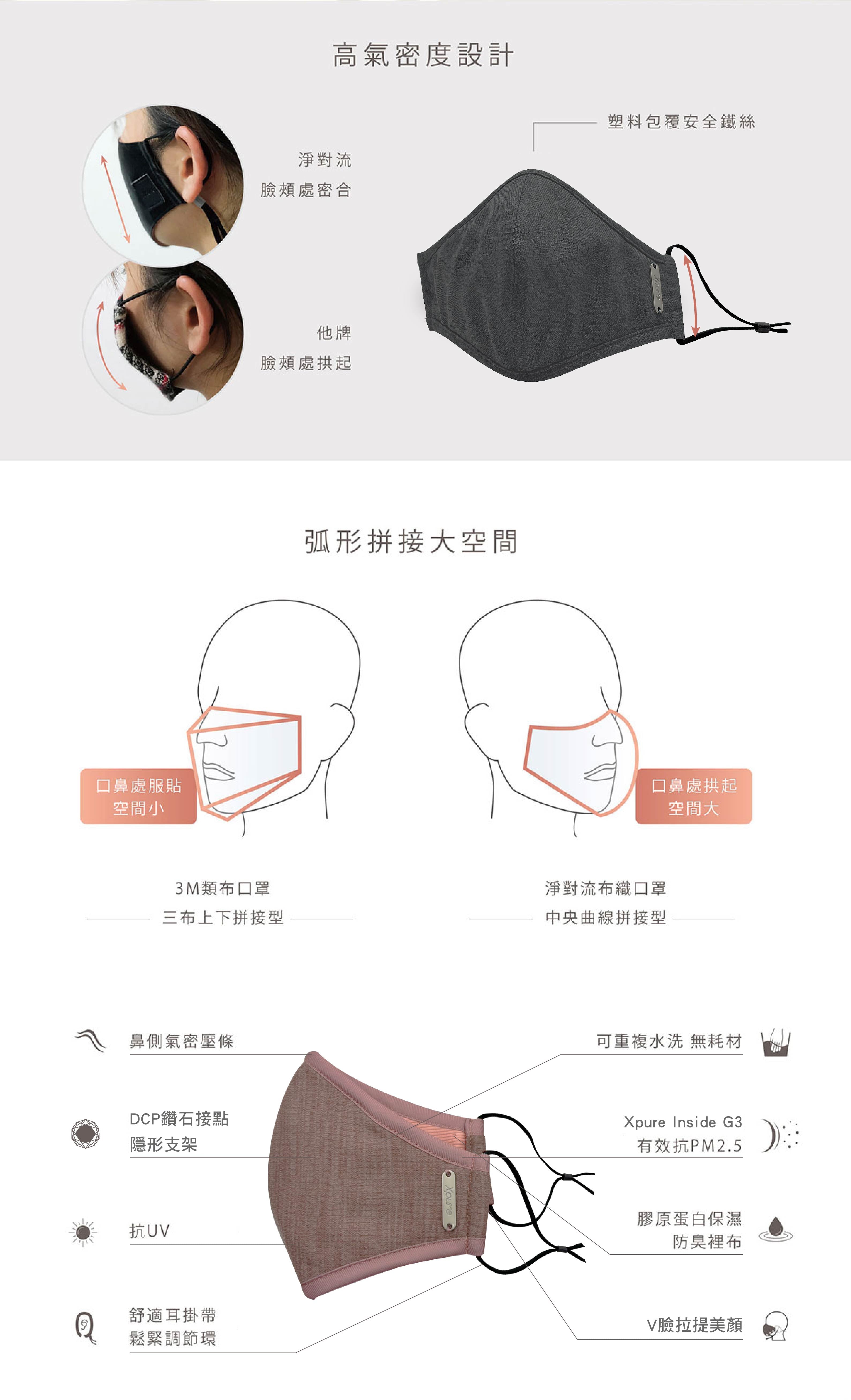 有效阻擋PM2.5、可重複水洗無耗材、舒適柔軟好呼吸。