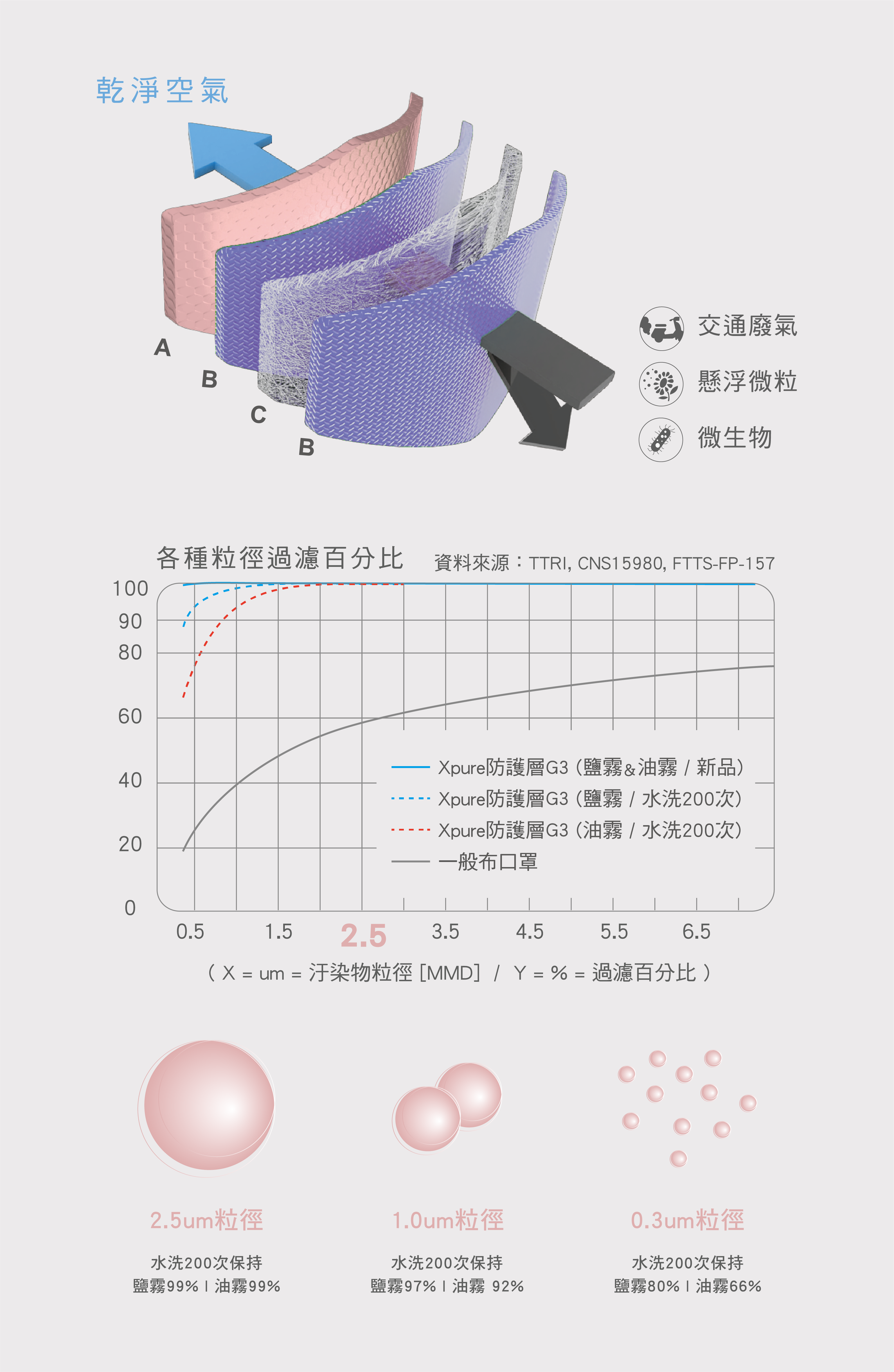 通過CNS15980國家抗霾認證A級!有效阻擋油性與非油性PM2.5
