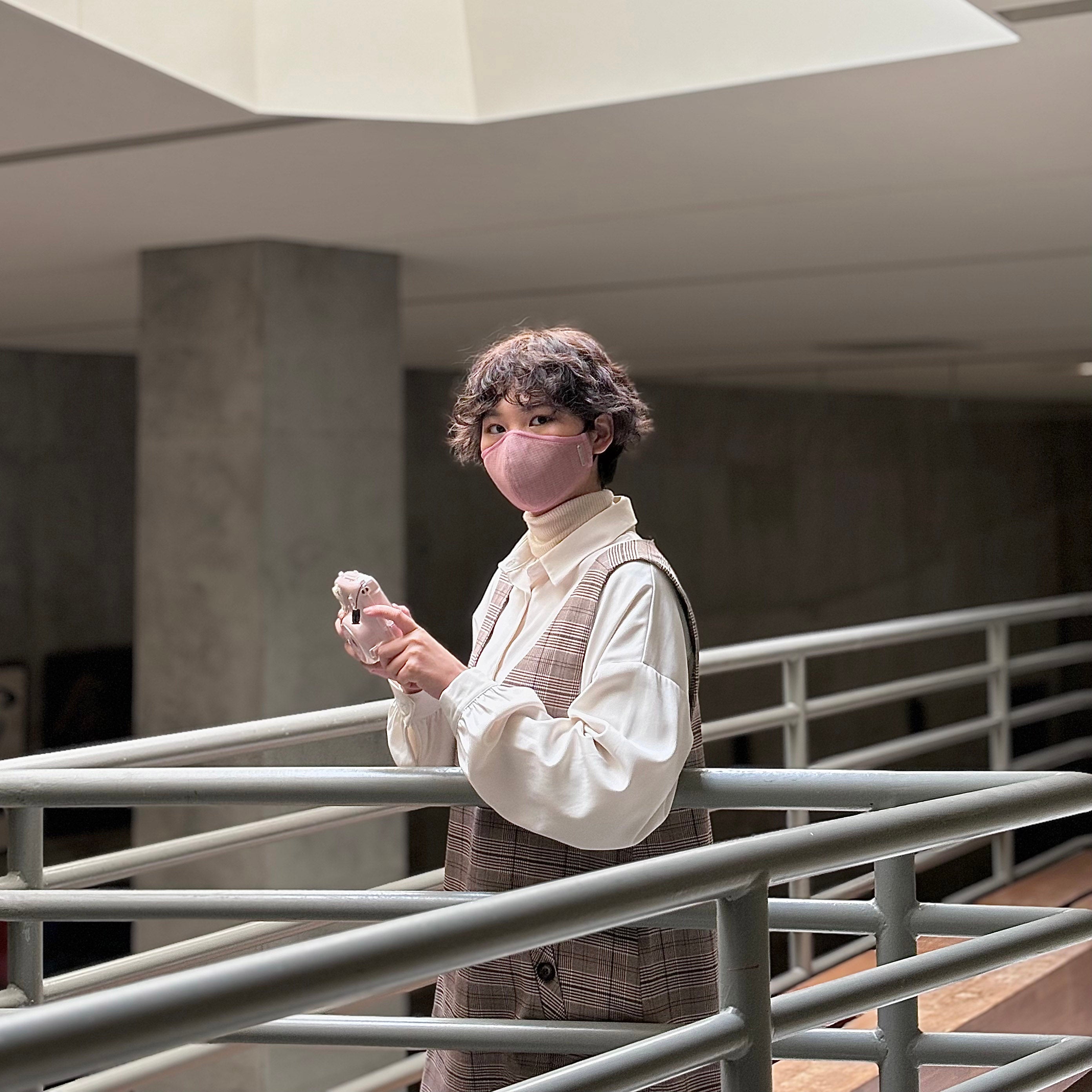 藏在口罩內側的膠原胜肽保濕裡布特別選櫻花粉色,不經意時刻露出,展現優雅小心機。也讓妝粉沾黏不那麼顯眼。