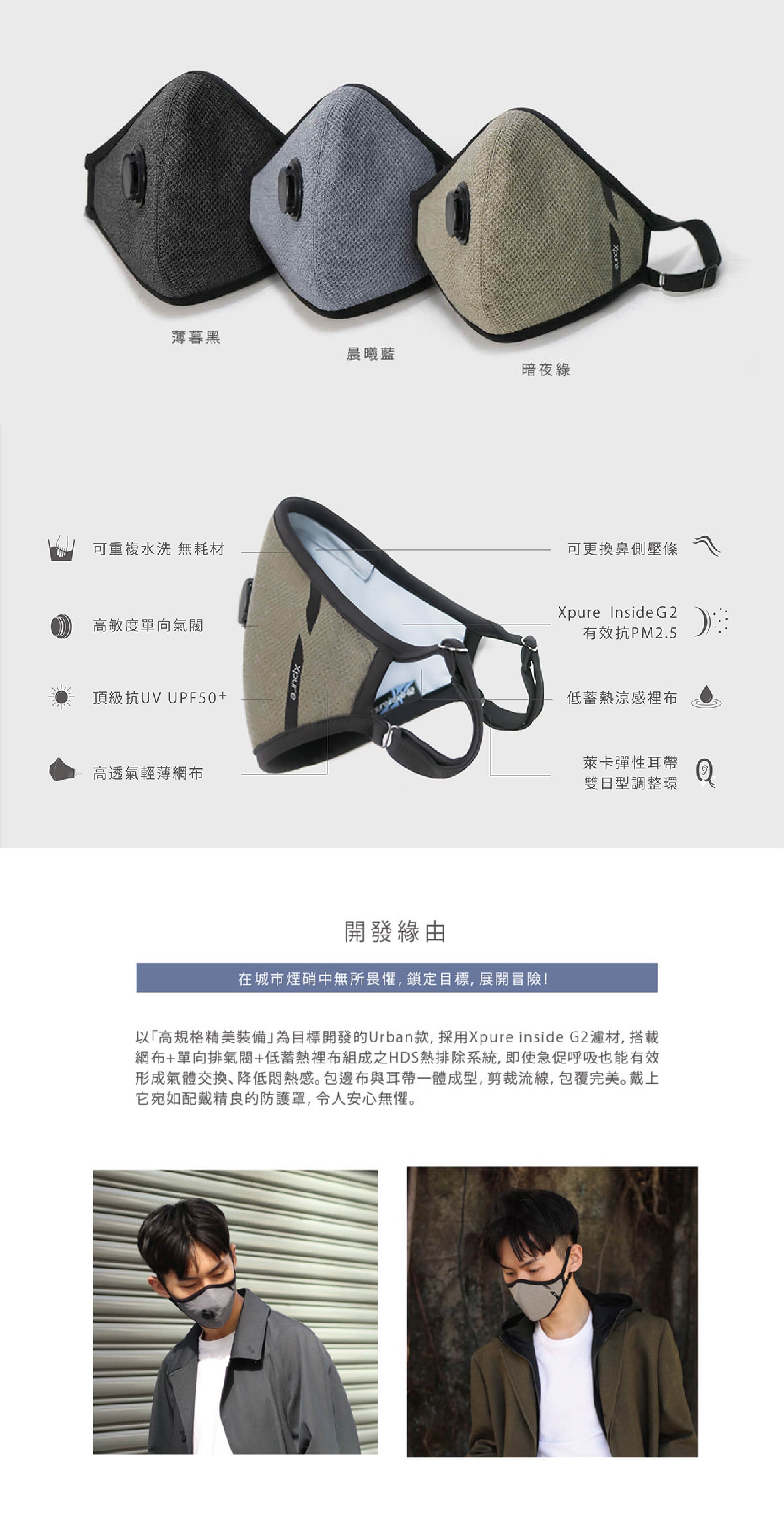 Urban款、All-fit款和Beauty款三款使用相同的Xpue奈米防護層G2,都是通過CNS15980 B級,因此在過濾效果上是相同的,當然也同樣能承受水洗200次唷!而基本款使用的是G1濾材,通過CNS15980 D級,在防護效果上稍差,但在一般環境下使用也是足夠的。