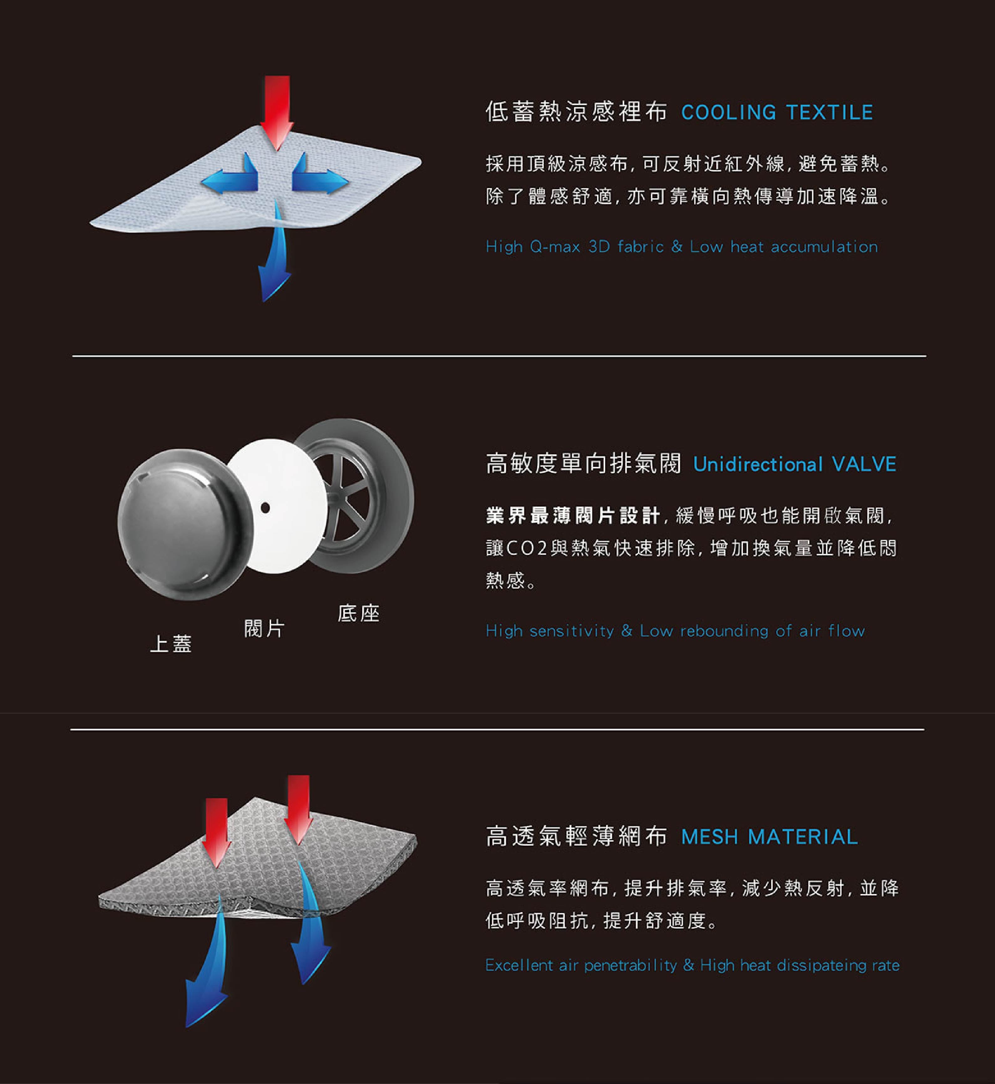 1. 有HDS熱排除系統(透氣網布 + 涼感裡布 + 排氣閥),更涼爽透氣。