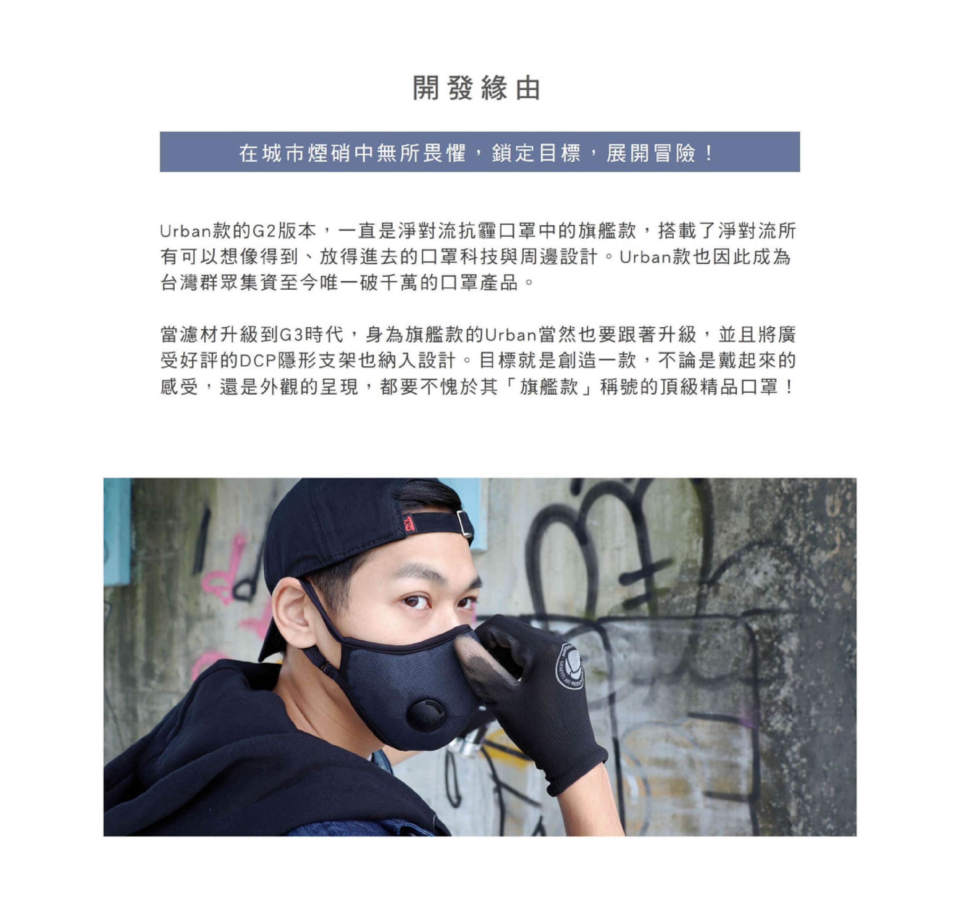 淨對流的口罩可水洗兩百次依舊維持良好濾效,Urban款在清洗時不用將壓條與氣閥取下,可直接洗滌。建議的洗法是「輕柔手洗」,可以使用任何非強酸強鹼類的洗滌劑(洗衣精、肥皂、沐浴乳、洗手乳...等)來幫助洗清。若欲使用洗衣機洗,請放入洗衣袋保護,並建議模式調成「柔洗」,避免有些品牌的洗衣機攪拌力量太強而傷害了口罩結構。洗完後晾乾即可,不可烘乾。