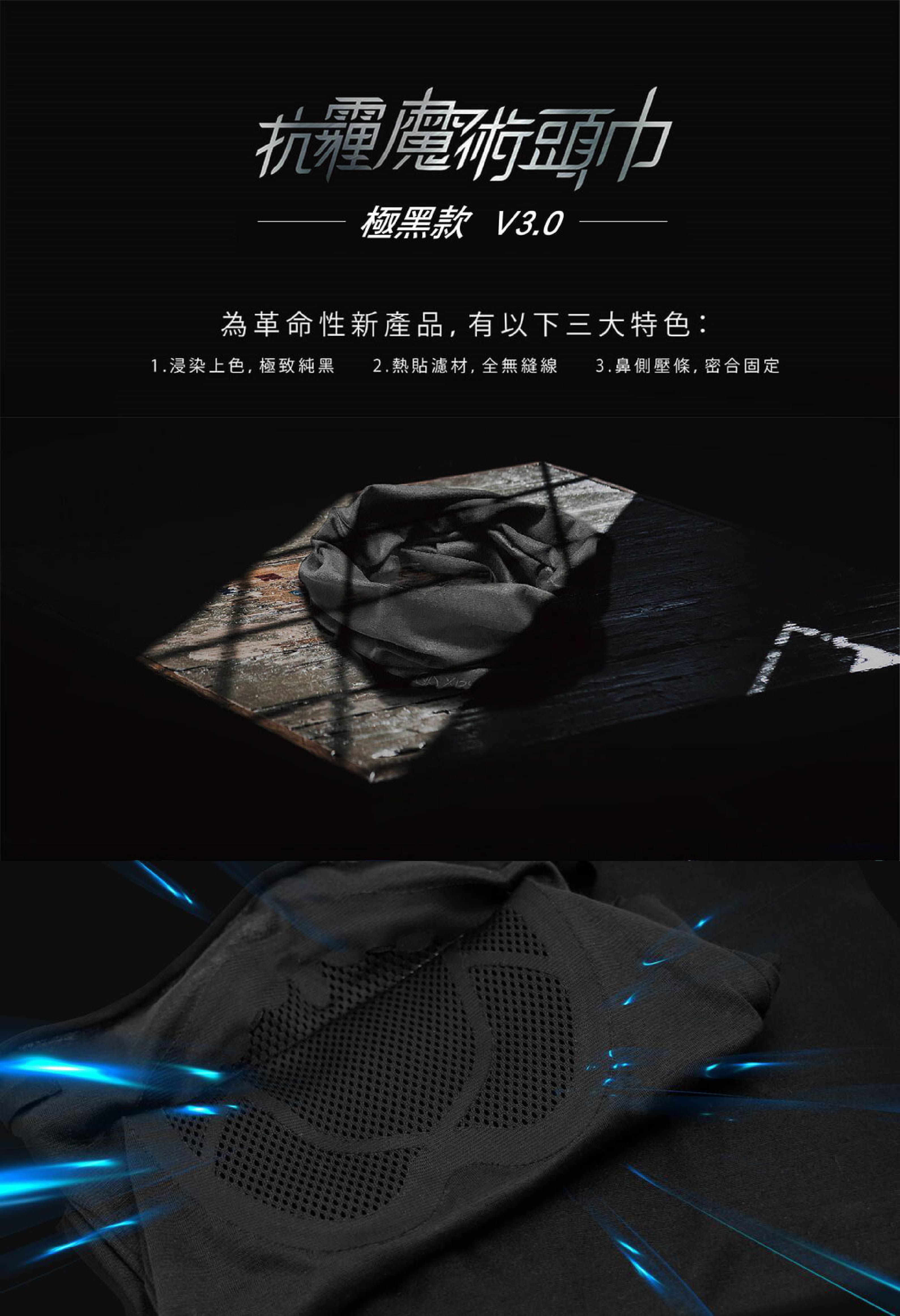 - 極黑款V3.0的奈米防護層有淨對流獨創的「折疊立體結構」,自然撐起呼吸空間,大幅減少鼻頭壓力。