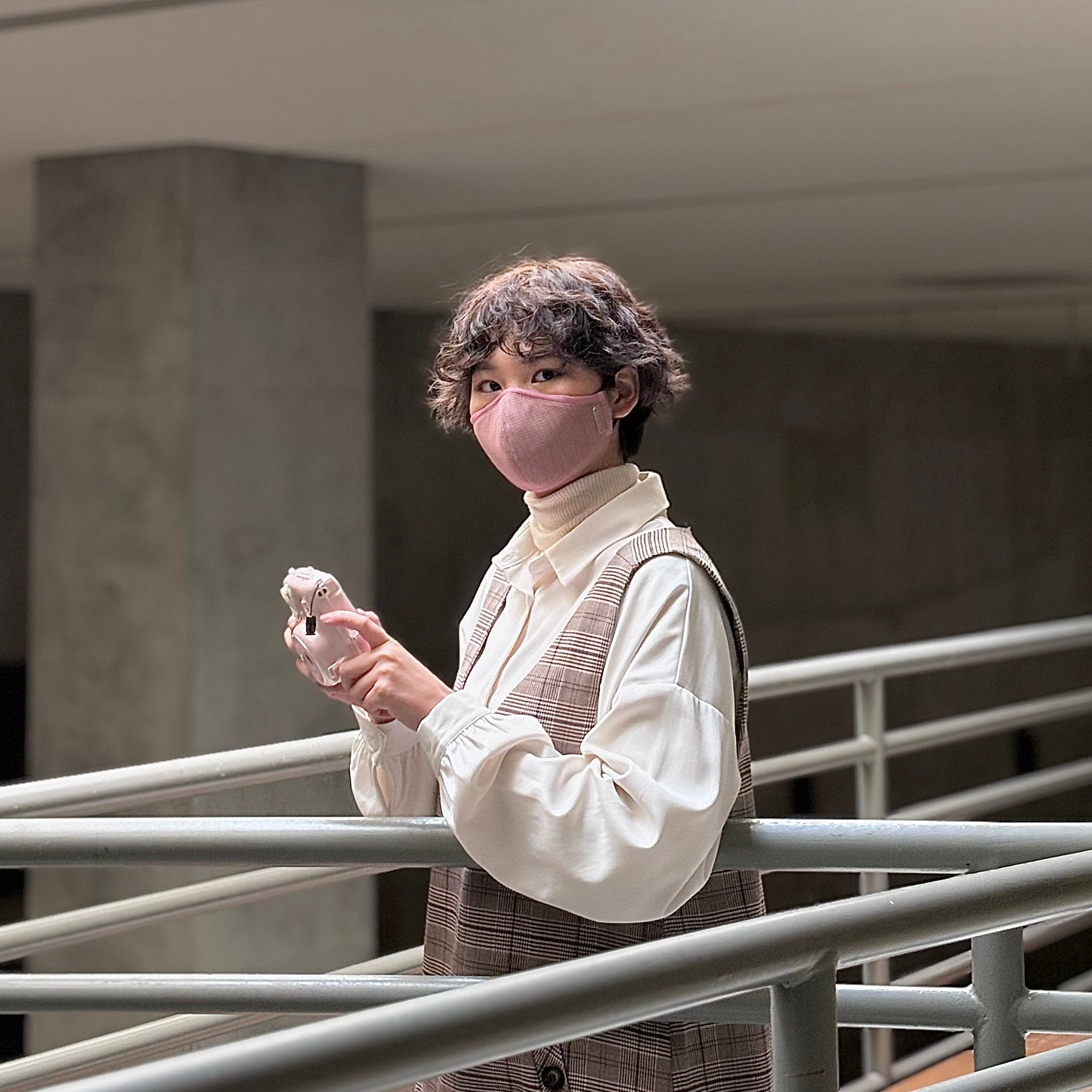 藏在口罩內側的膠原胜肽保濕裡布特別選櫻花粉色,不經意時刻露出,展現優雅小心機。也讓妝粉沾黏不那麼顯眼。