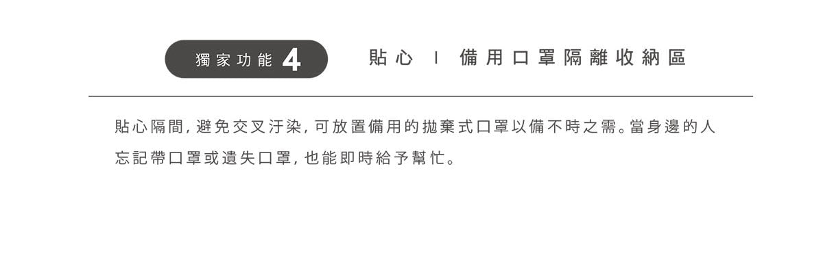 - 貼心 | 備用口罩,隔離夾層